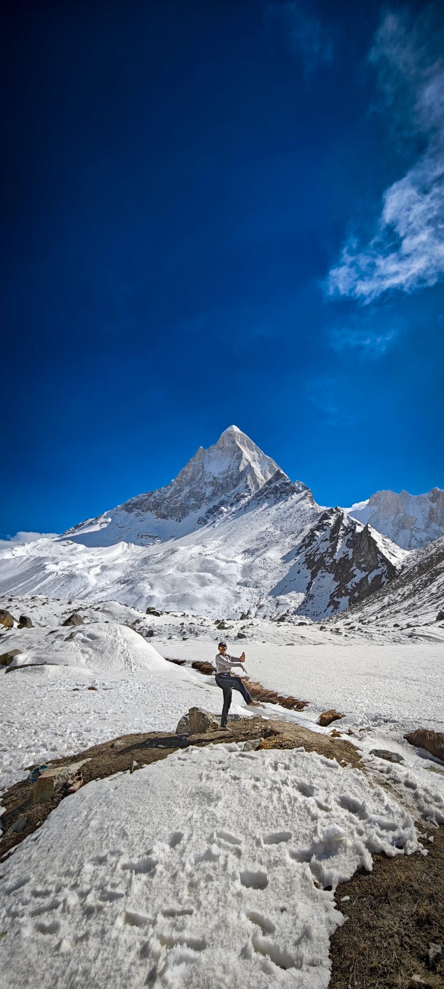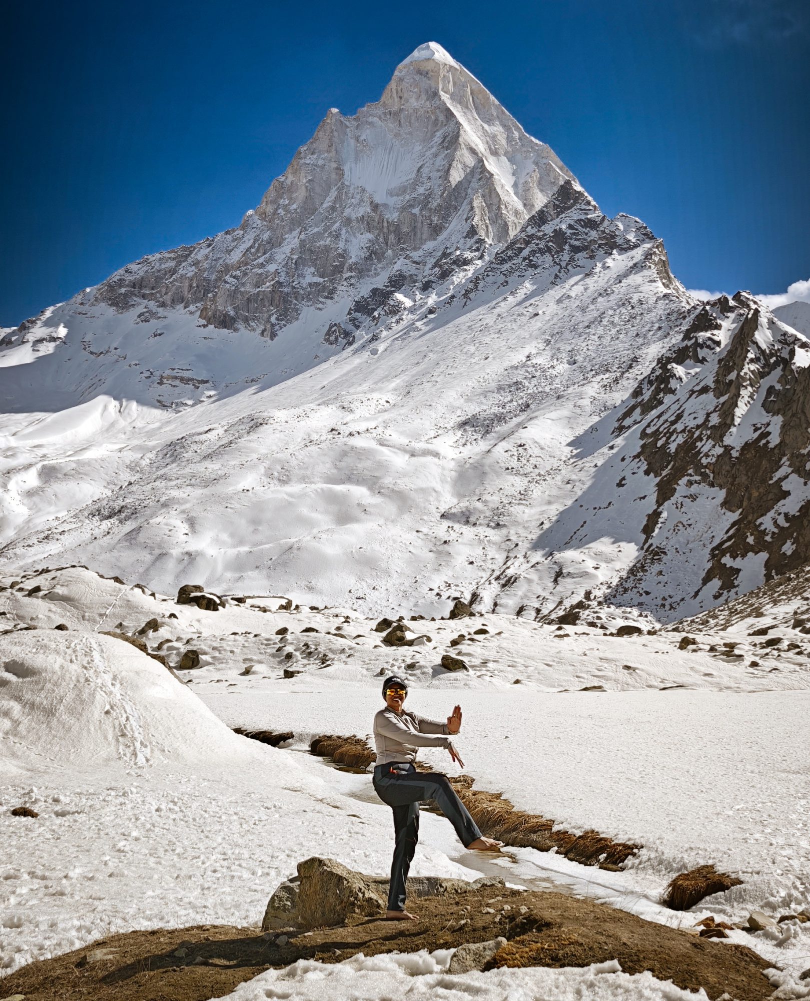 I spent days living in a realm between earth and ether, where the boundaries of the physical world seemed to dissolve into the divine. Sleeping on the ice, I was cradled by a silence so profound it felt like a living presence. Above me, the night sky was a riot of ancient light; the stars were so vivid and low-hanging that it felt like the universe was peering back at me—an infinite eye watching a solitary soul. In that hallowed space, beneath the shimmering canopy of the Milky Way, I danced as a tribute to Shiva, the source of all Natya Shastra. It wasn’t a performance for an audience, nor a display of skill; it was a raw, rhythmic conversation between my spirit and the stillness of the peaks.
