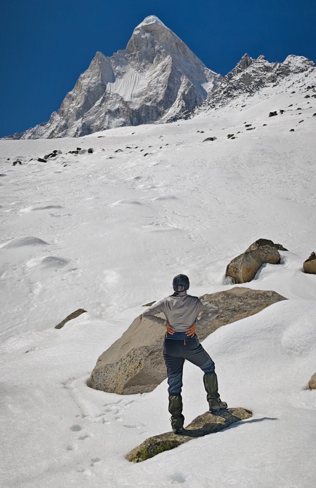 The Gaumukh-Tapovan trail is a rare geography where the physical world and the metaphysical world collide. Spiritually, it is a landscape of profound penance. It was here that King Bhagirath is said to have performed his thousand-year meditation to bring the celestial Ganga to Earth, seeking to liberate the souls of his ancestors. The trail leads to the base of Mt. Meru, the peak Krishna identifies with himself in the Bhagavad Gita when He declares, “Of the immovable, I am the Himalayas; among the mountains, I am Meru.” To trek here is to walk through the very body of the Divine—where the peaks are not just rock, but the physical manifestation of supreme stability and cosmic order.